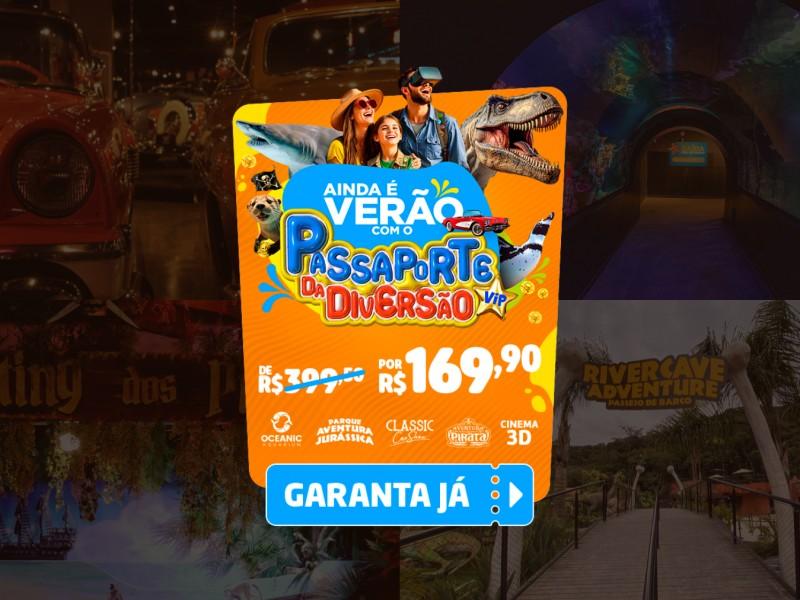 Visite as melhores atrações de Balneário Camboriú com o Passaporte VIP da Diversão, economizando muito. Com um único ingresso você pode visitar 5 atrações incríveis como Oceanic Aquarium, Cinema 3D, Aventura Pirata, Classic Car Show e o Parque Aventura Jurássica